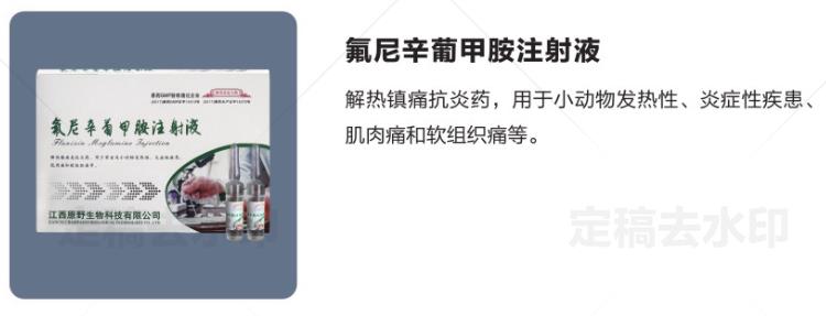 解熱鎮(zhèn)痛抗炎藥,用于小動(dòng)物發(fā)熱性、炎癥性疾患、氟尼親葡甲胺注射液 肌肉痛和軟組織痛等。