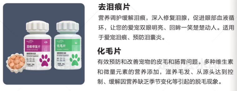 營養(yǎng)調(diào)護緩解淚痕,深入修復(fù)淚腺,促進眼部血液循環(huán),讓您的愛寵雙眼明亮、回眸一笑楚楚動人。適用于愛寵淚痕、預(yù)防淚囊炎。